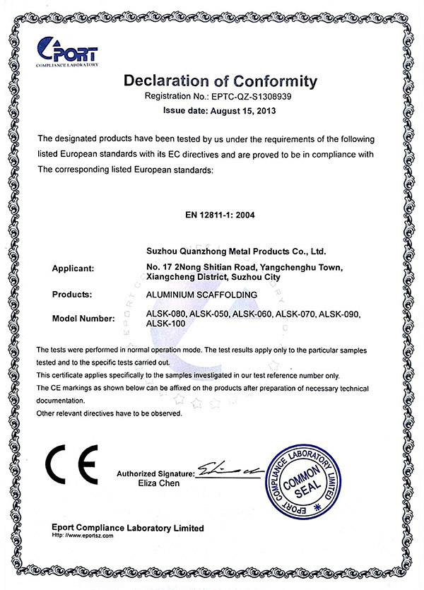开云·官方端网页版登录入口-开云(中国)专注铝合金制品的开发“产品就是人品”的企业理念,不断进行技术创新、设备创新、服务创新、和管理方式创新来继续研发出更多满足未来发展需要的产品, 公司产品通过欧盟认证取得CE认证并取得证书,铝合金脚手架系列产品通过SGS认证,铝合金平台和梯具类产品均严格按照GB12142-2007,GB17888等标准设计生产。
